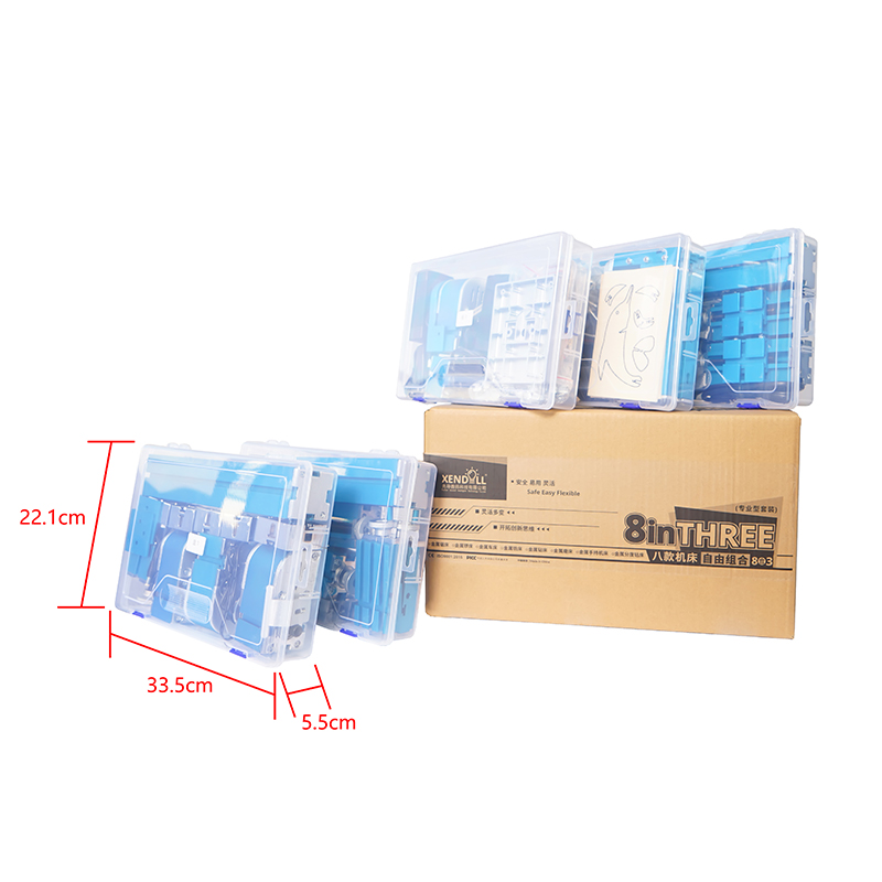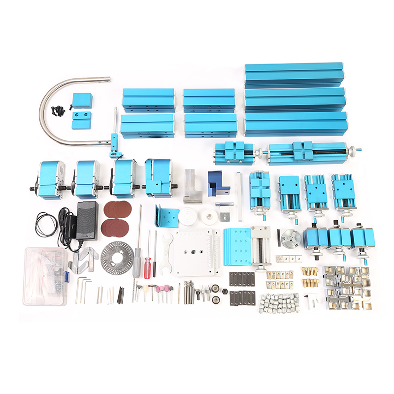 專業型套裝可以組裝8種不同功能的機床(金(jīn)屬鋸床、金屬鑼床、金屬車床、金屬銑床、金屬鑽床、金屬磨床、金屬手持機床、金屬(shǔ)分度鑽床),一次可任意使用其中3種功能的機(jī)床。機床體積小、占用(yòng)空間少、拆裝容易(yì),安裝不傷手(shǒu),無性別、年齡限製,從八歲以上兒童(tóng)到七十餘歲的健康人士都可以操作使用及製作模型(xíng),配有詳細產品(pǐn)說明、模型製(zhì)作教(jiāo)程、防護眼鏡、圍裙等,讓您可方便安(ān)心地使用。鋸床經過(guò)特殊設計,擁有安全緩衝,安全不傷手,就算是皮膚碰到工作時的鋸齒,也隻會引起輕微的震動,不會鋸傷手,可以放心交給學生操作。